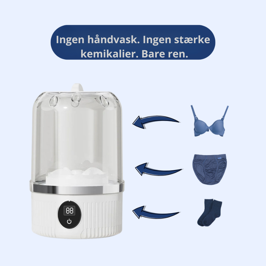 "over et årti,Jeg var virkelig imponeret. SmartVask er den perfekte løsning til små tøjvaske – især undertøj, babytøj og finvask. Det er skånsom, effektiv,og slider ikke på stoffet som traditionelle vaskemaskineranbefaler det stærkt til rejsende og dem, der vasker små mængder.”